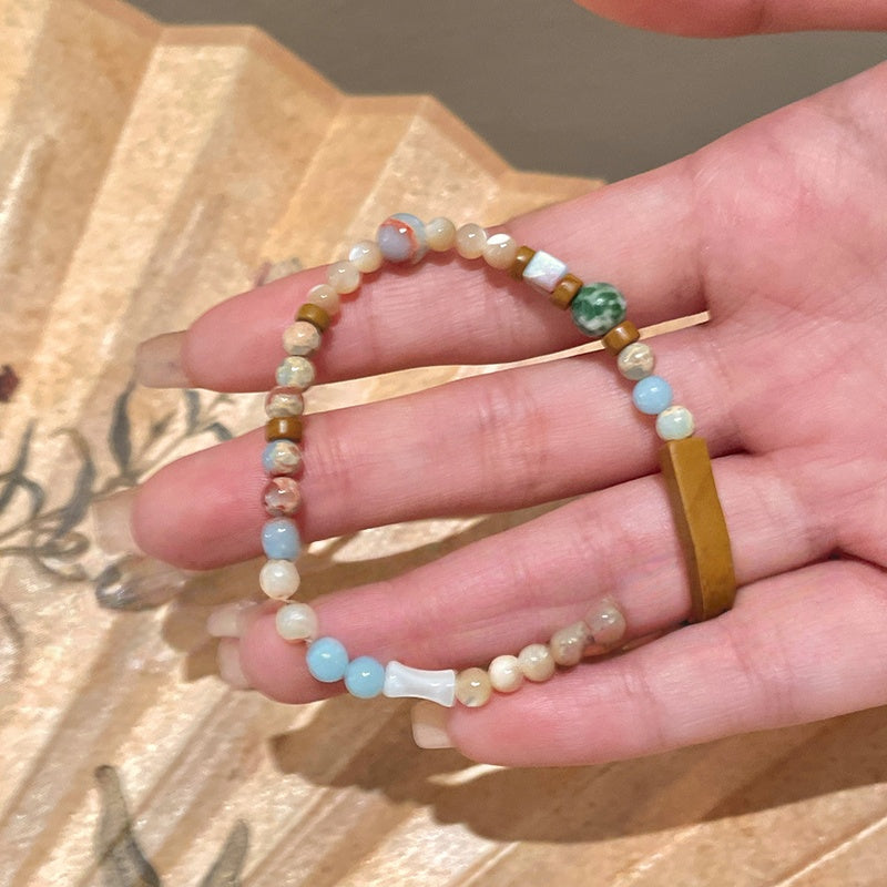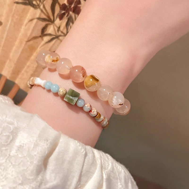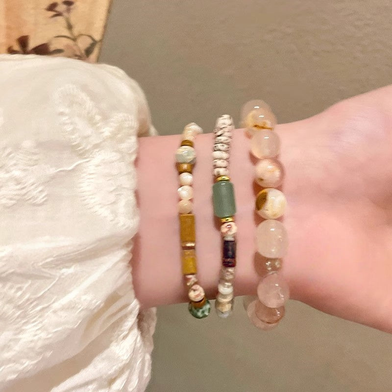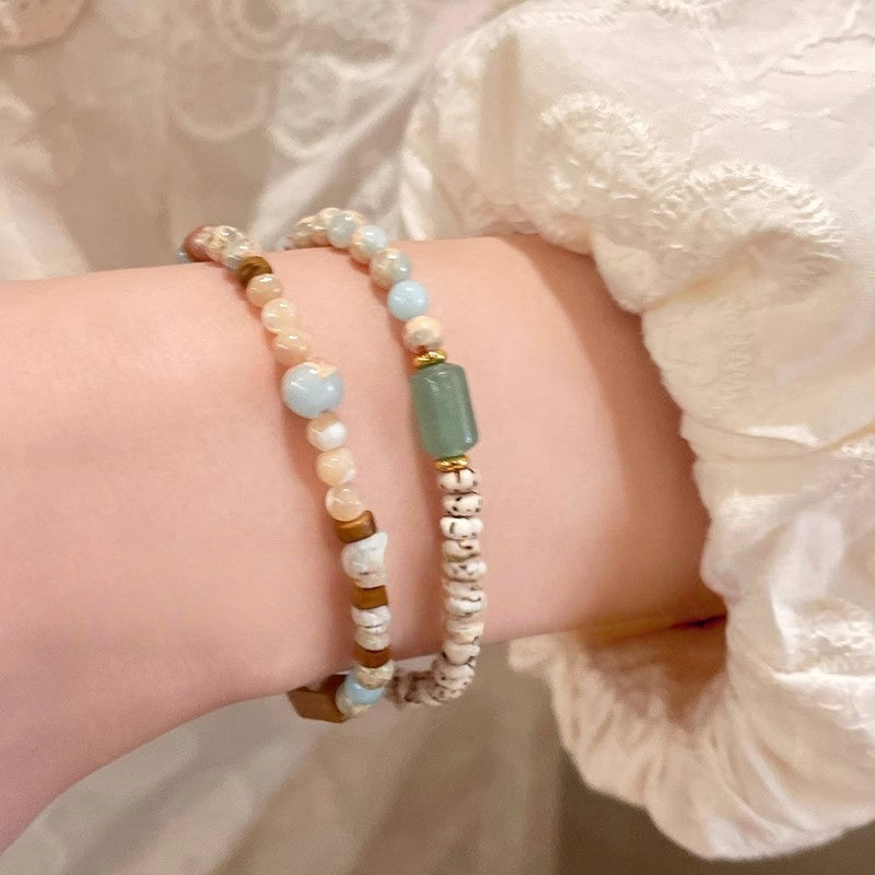 Adjustable Shoushan Stone Bead Bracelet - Boho Stacking Bracelet Set, Lightweight Stretchy Summer Jewelry for Layering, Zen Minimalist Gift for Women