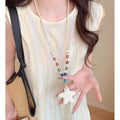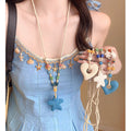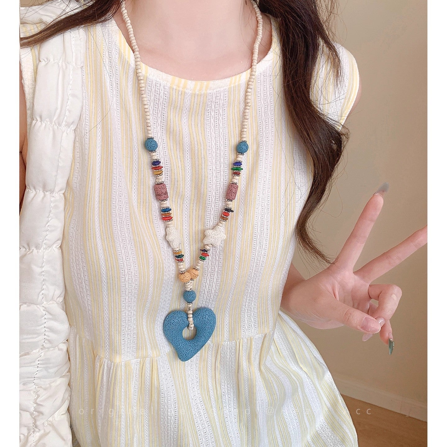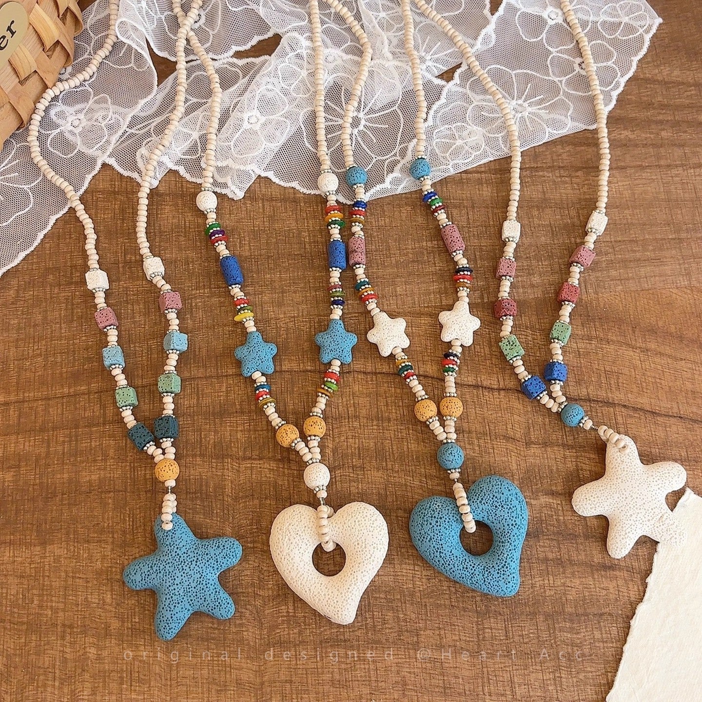Dopamine Beach Necklace with Colorful Hearts & Sea Stars | Volcanic Stone Layered Choker for Women