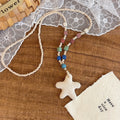 Indulge in the joyful energy of our Dopamine Beach Necklace—a fusion of fiery volcanic stones, whimsical sea star charms, and rainbow-hued resin hearts. Each bead is hand-strung to capture the free-spirited essence of bohemian summers, perfect for adding a pop of color to your festival outfits or beach vacations.