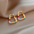 Ignite compliments with our Dopamine Geometric Ear Cuffs—where hand-painted enamel triangles meet rainbow resin hexagons in a weightless dance. Designed for non-pierced ears, these cartilage-hugging climbers radiate bohemian energy from Coachella festivals to downtown coffee runs.