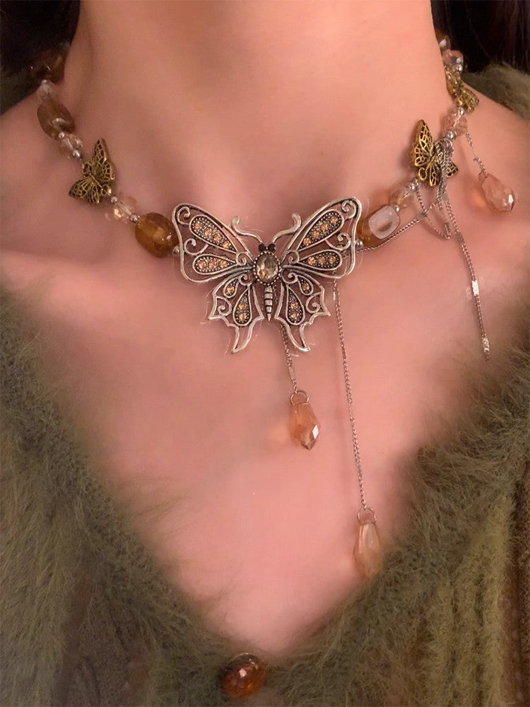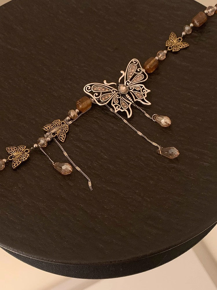 HEY TAO New Chinese-style ethnic fashion butterfly necklace for women, light luxury, niche design, caramel collar chain, waist chain style